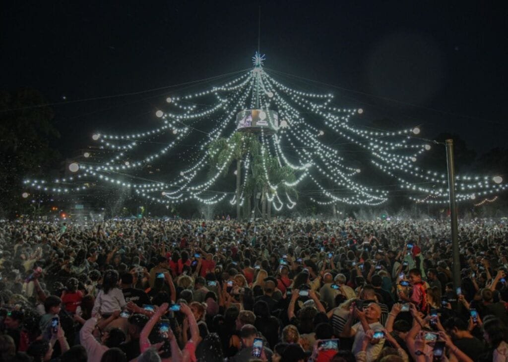 Miles de vecinas y vecinos que se dieron cita desde temprano para participar de la clásica propuesta. Ya a partir de las 19, ese sector del parque de la Independencia se convirtió en un gran punto de encuentro familiar con música en vivo y espectáculos que le pusieron ritmo a la tarde, amenizando el esperado momento del encendido, que tuvo lugar alrededor de las 20:30.