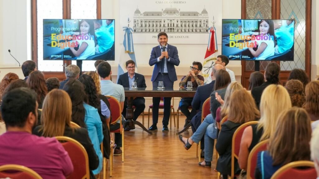 El Gobierno de la Provincia de Santa Fe presentó este miércoles el Programa de Educación Digital, una iniciativa que busca establecer pautas para la regulación del uso de nuevas tecnologías en los establecimientos educativos y promover un uso seguro, saludable, responsable, ético y creativo de los entornos digitales. Además, contempla instancias de formación y capacitación para docentes y equipos directivos en alfabetización digital, ciudadanía digital y cuidado en entornos virtuales.