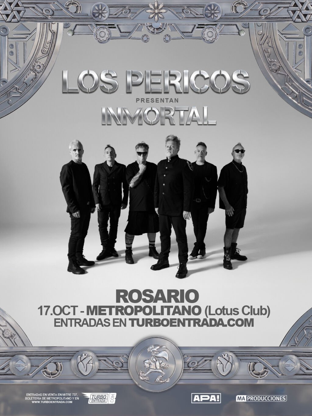 LOS PERICOS regresan a Rosario con “Inmortal” su nuevo material de estudio en el marco de una gira que los llevará a recorrer distintos escenarios del país y de Latinoamérica como Bogotá y México. En cada recital se presentarán en vivo las canciones del nuevo disco junto a un viaje musical por distintas etapas de su carrera.