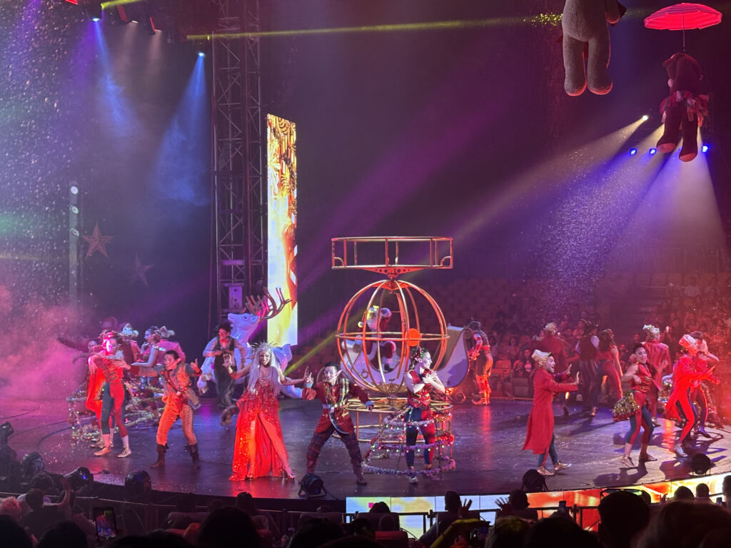 Fiel al estilo de Flavio Mendoza, la puesta en escena es impecable. El show combina la destreza física de acróbatas de primer nivel con una tecnología de escenario giratorio y proyecciones que mantienen al público —tanto niños como adultos— con la boca abierta. El vestuario es otro de los grandes protagonistas: renos, duendes y personajes fantásticos desfilan con trajes llenos de detalle y color, creando cuadros visuales dignos de una postal internacional.