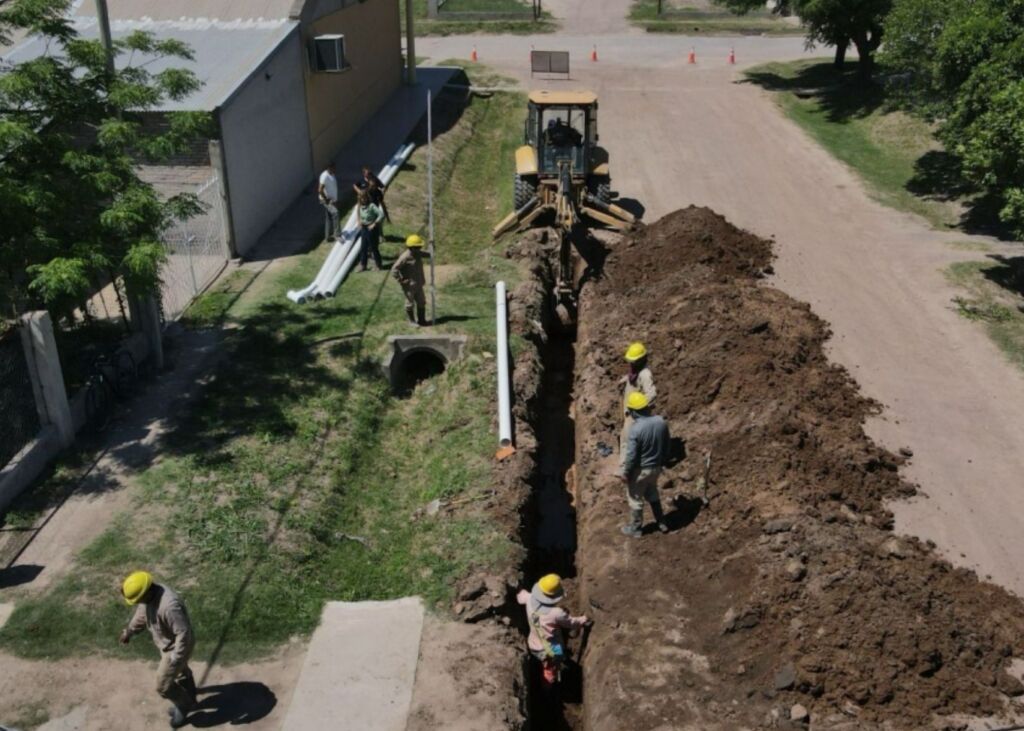 En cuanto al avance de los trabajos que desarrolla la empresa Winkelmann SRL, actualmente los equipos trabajan en el tendido de cañerías en la Cuenca 3 (que comprende a los barrios Campo de Mayo, Villa Crespo y parte de San Genaro), con la colocación de bocas de registro y conexiones domiciliarias, con la finalización del tendido sobre Avenida Perón, correspondiente a las Cuencas 1 y 2 (de las que forman parte los barrios San Genaro y Güemes).