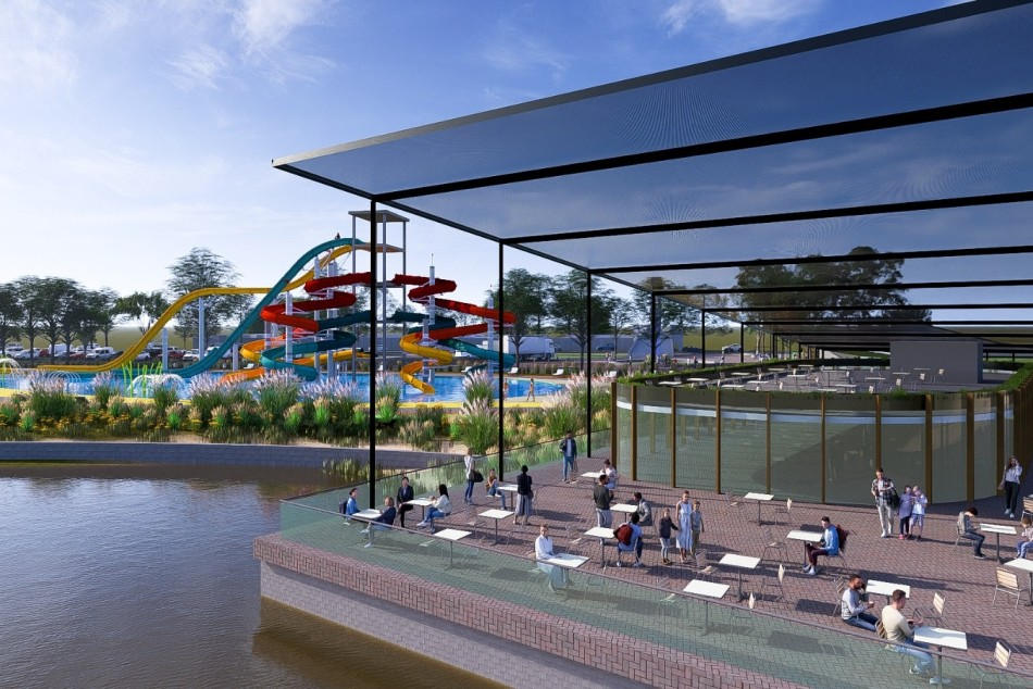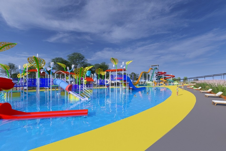 Por un lado, el sector infantil, ubicado al norte, contará con juegos de baja profundidad, toboganes de menor escala y dispositivos de aspersión, pensados para el público más pequeño. En el extremo sur, en tanto, se emplazará la torre de toboganes, una estructura de gran altura que concentrará diferentes propuestas de deslizamiento —abiertas, cerradas y de caída rápida—, optimizando el uso del espacio vertical.