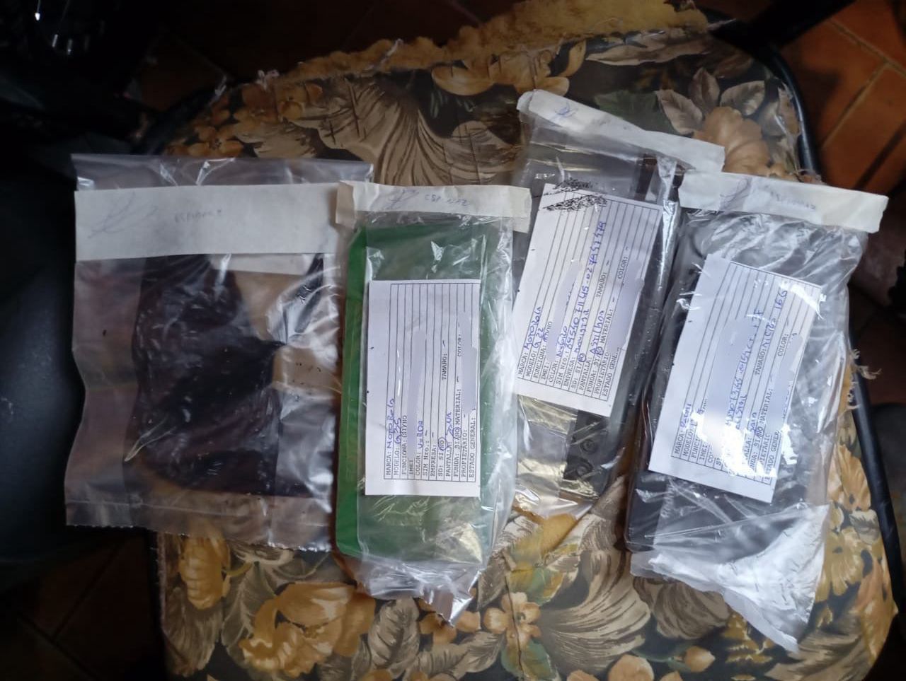 Los procedimientos se ejecutaron en Ocampo al 4300 (2), Pasaje 1709 al 7800, Ituzaingó al 400 y Cerrito al 4500, donde además se secuestraron nueve teléfonos celulares, envoltorios con una sustancia blanquecina compatible con cocaína, material vegetal compatible con marihuana y un automóvil Peugeot 206, además de otros dispositivos que serán sometidos a peritajes.
